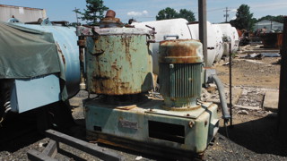 high intensity mixer Has 3-blade propellor type mixer. Vert mixing chamber 14" dia x 16" deep. Has manual plow. Manual plow valve on 4" outlet. variable speed motor 530 rpm min W/controls and timers.