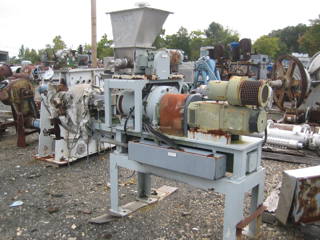 Continous, plastic pellet heater Approximatly 4" diameter x 12" long chamber, 3/4" diameter jacketed discharge. Electrically heated chamber, with roatary gear pump on discharge.