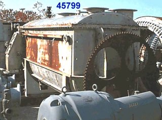 continuous mixing 25,000 kg/hr 8000 liter(2113 gallon) total capacity with (2) side hatches with hinged covers and hand wheel swing bolts, (1) 16" x 24" ID top drive end charge port, (1) 16" ID vent port top center, and (1) 17" x 20" ID bottom end discharge port. Internal shaft with plows 3/60/230/460 volt 1750 rpm down to 90 rpm Weight 17,200 lbs.
