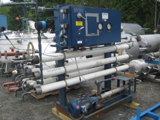 multi-effect WFI water distillation unit. All sanitary construction Unit has 5 distillation columns, all national board rated, 145 psi @ 14 to 362 degrees f in the shell; 145 psi @ 14 to 362 degrees f in the tubes. circulation pumps